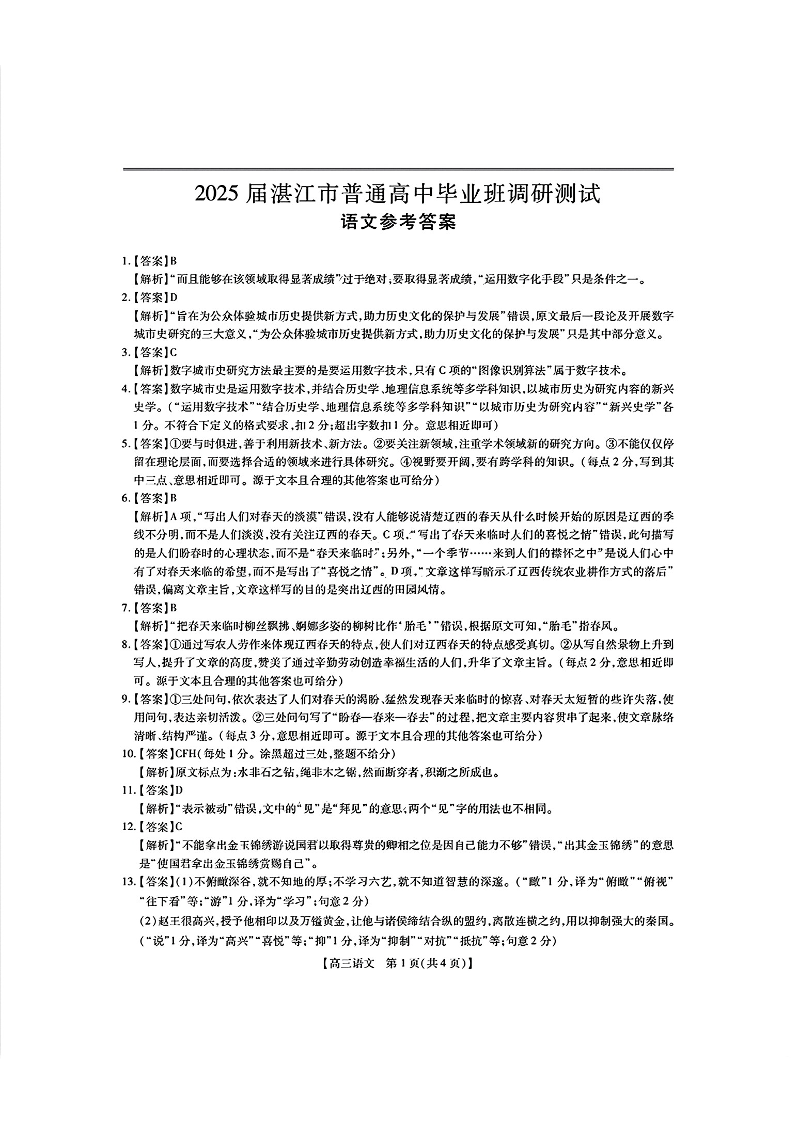 2025届湛江市普通高中毕业班10月调研测试+语文答案