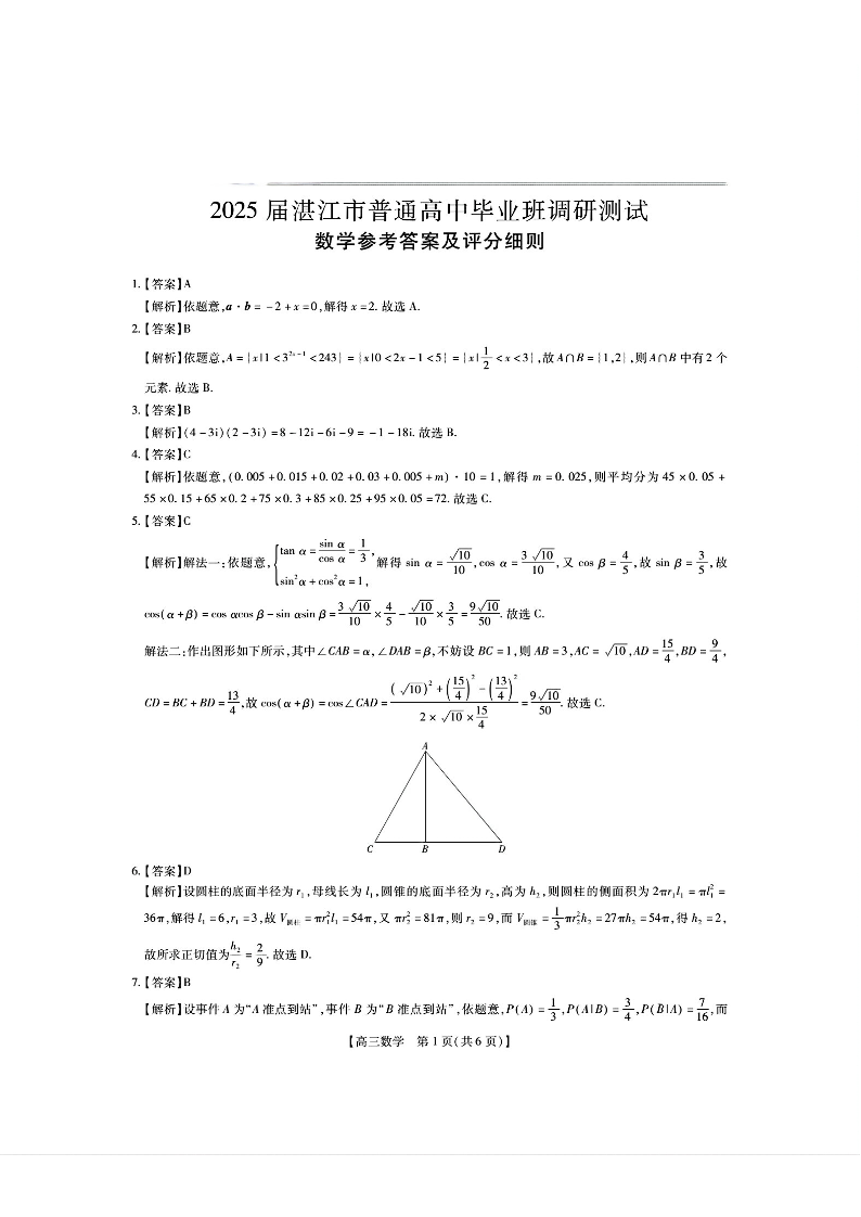 2025届湛江市普通高中毕业班10月调研测试+数学答案