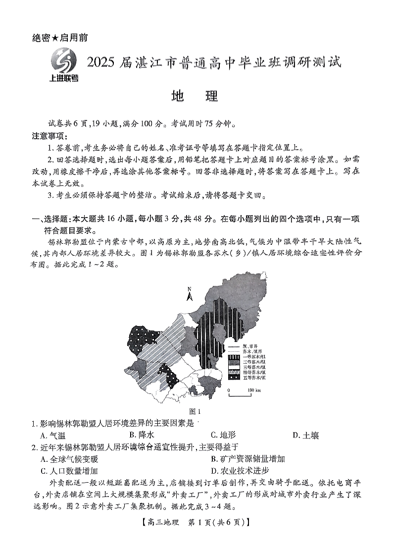 2025届湛江市普通高中毕业班10月调研测试+地理