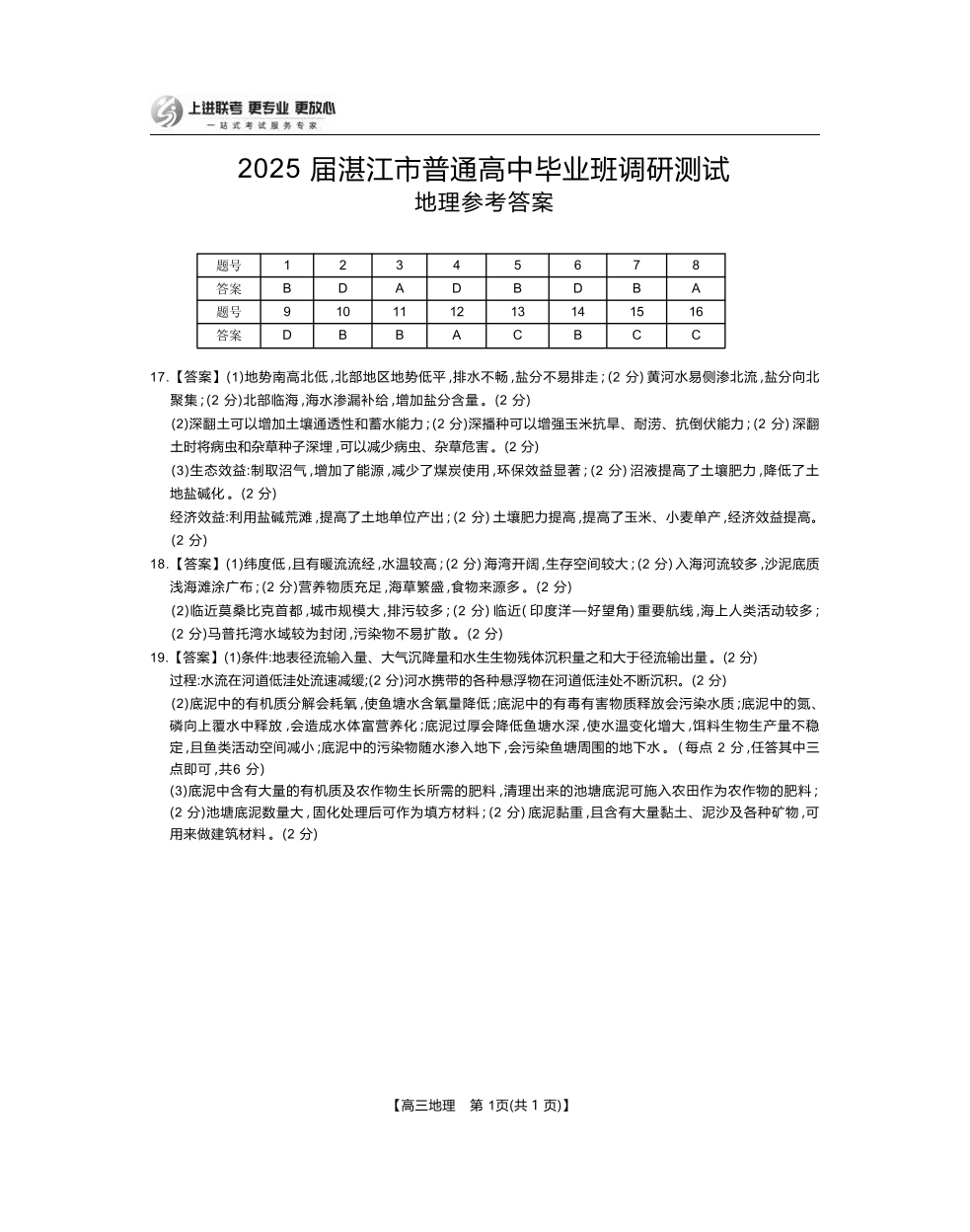 2025届湛江市普通高中毕业班10月调研测试+地理答案