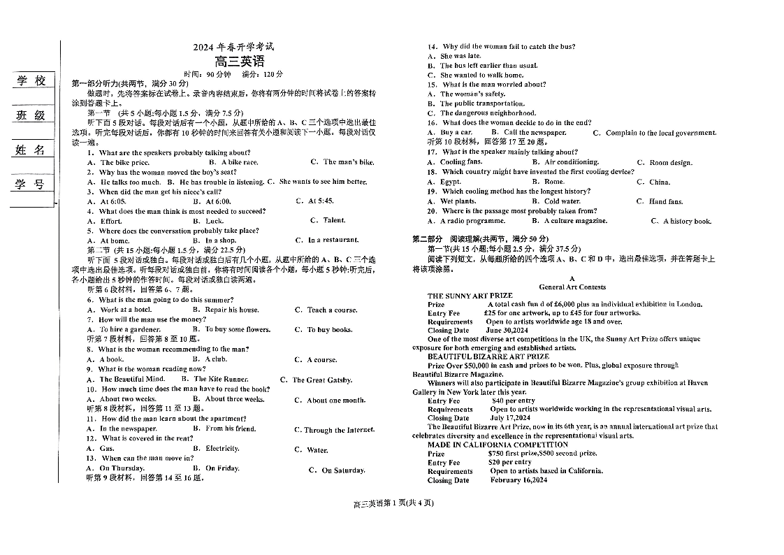 辽宁省辽东南协作体2023-2024学年高三下学期开学考试 英语