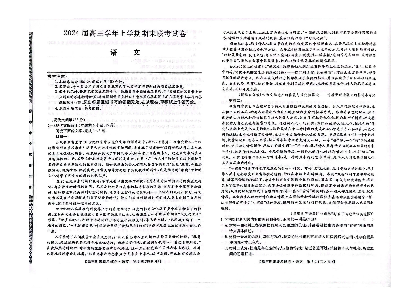 辽宁省朝阳市建平县2023-2024学年高三上学期期末联考 语文