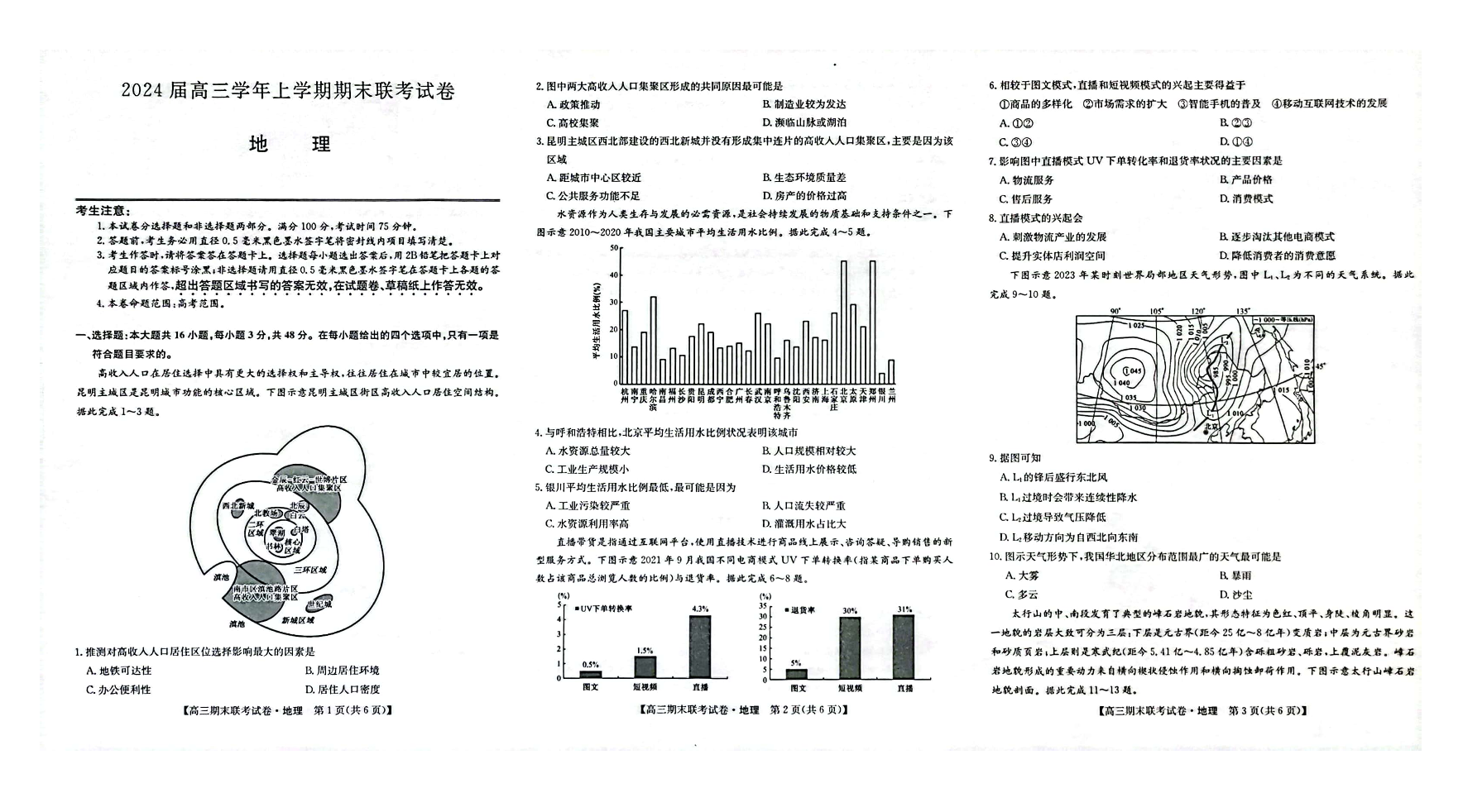 辽宁省朝阳市建平县2023-2024学年高三上学期期末联考 地理