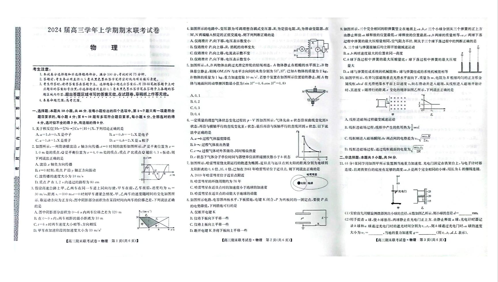 辽宁省朝阳市建平县2023-2024学年高三上学期期末联考 物理