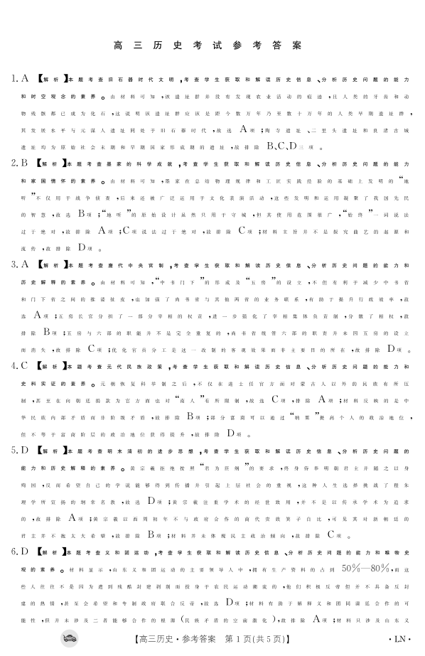 辽宁省抚顺市六校协作体2023-2024学年高三上学期期末考试 历史答案