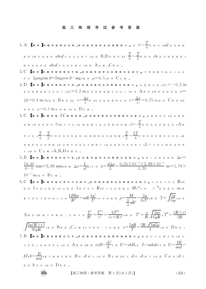 辽宁省抚顺市六校协作体2023-2024学年高三上学期期末考试 物理答案