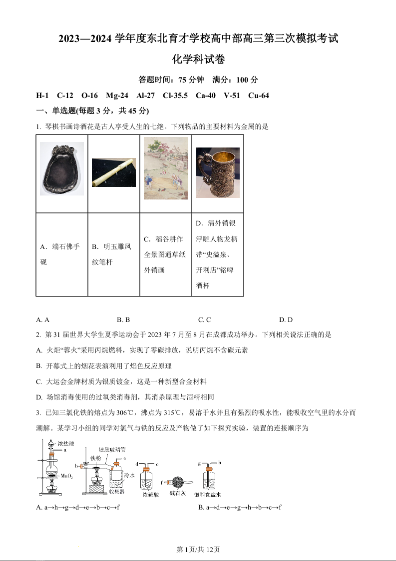 2023-2024学年度东北育才学校高中部高三第三次模拟考试 化学