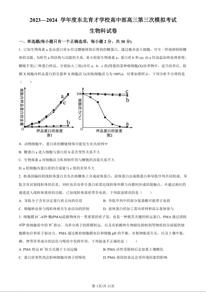 2023-2024学年度东北育才学校高中部高三第三次模拟考试 生物