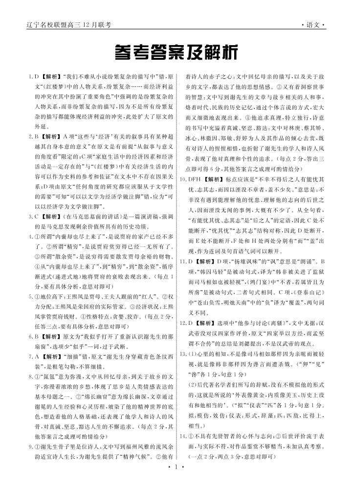 辽宁省名校联盟2023-2024学年高三上学期12月联合考试 语文答案
