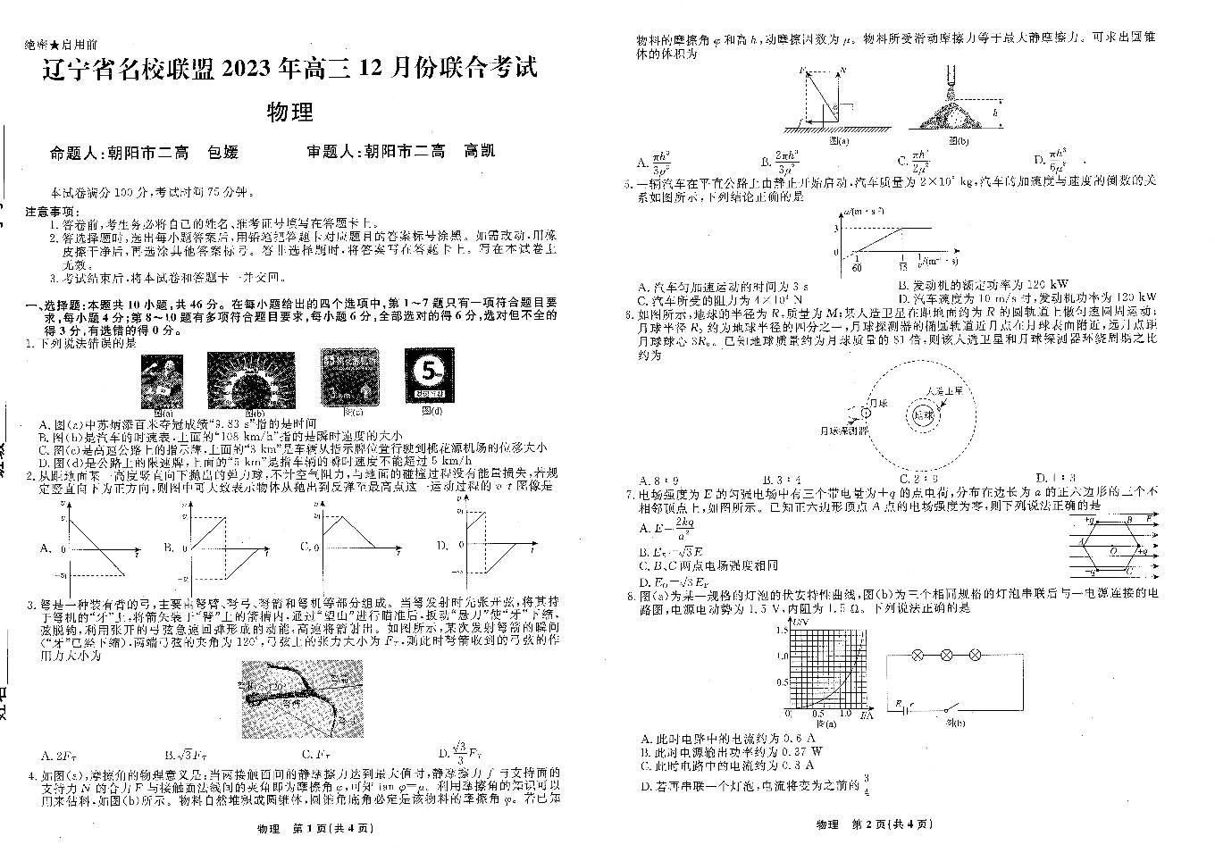 辽宁省名校联盟2023-2024学年高三上学期12月联合考试 物理