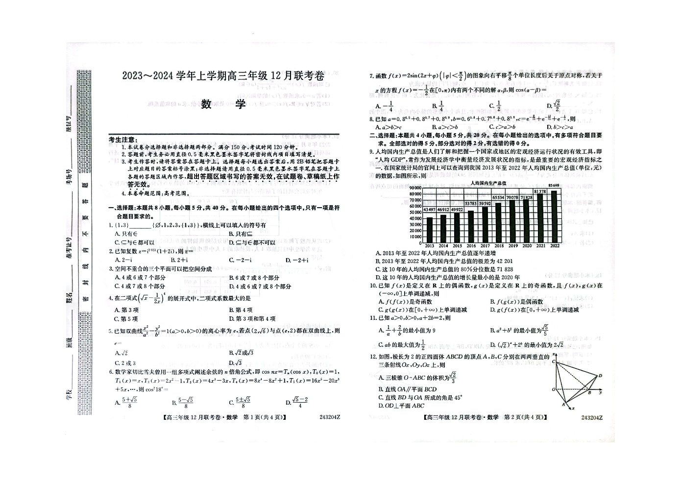 辽宁省部分学校2023-2024学年高三上学期12月联考 数学