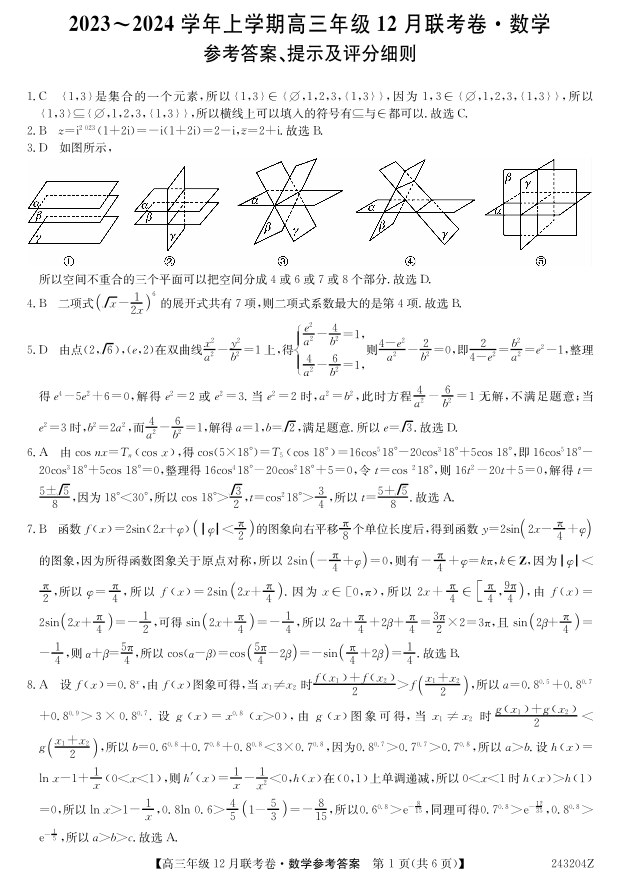 辽宁省部分学校2023-2024学年高三上学期12月联考 数学答案