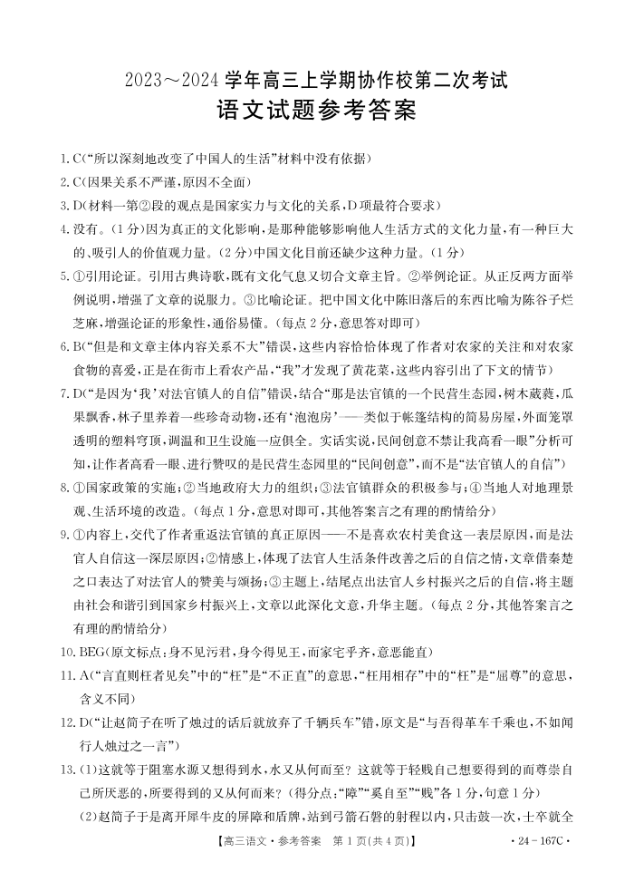 辽宁省葫芦岛市协作校2023-2024学年高三上学期第二次考试 语文答案