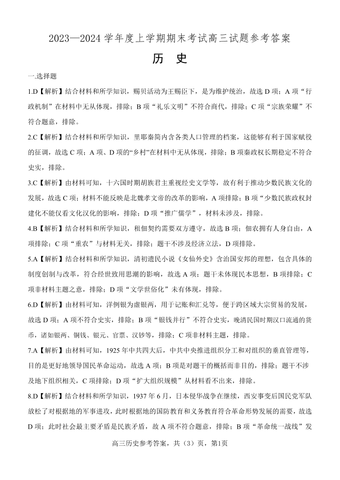 高三历史答案定稿