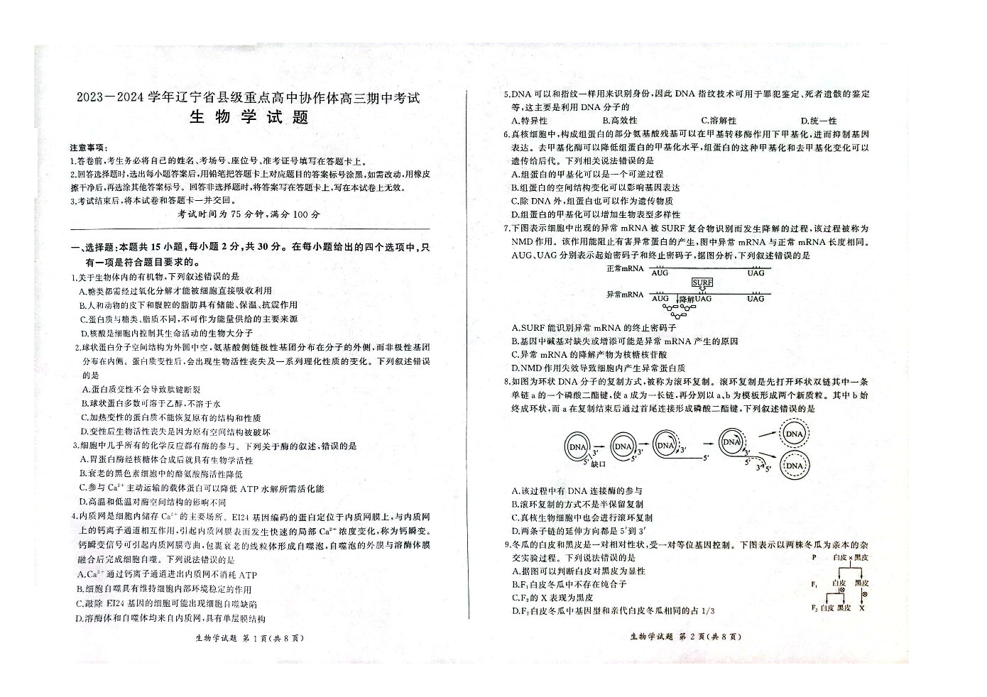 辽宁省县级重点高中协作体2023-2024学年高三上学期期中考试 生物