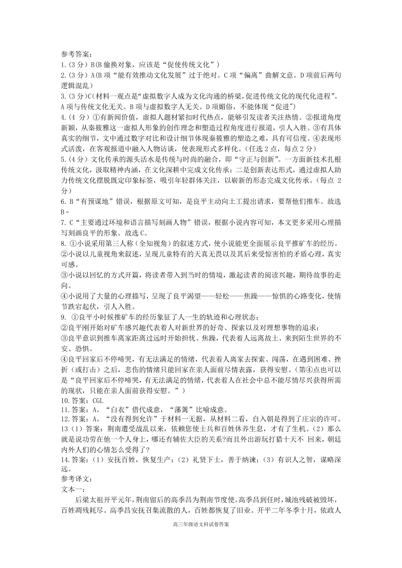 辽宁省实验中学2023-2024学年高三上学期期中考试 语文答案