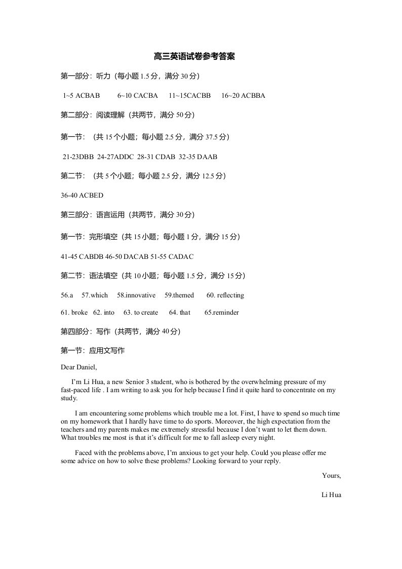 辽宁省实验中学2023-2024学年高三上学期期中考试 英语答案