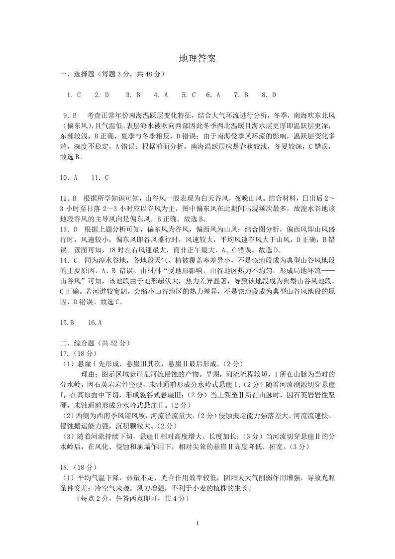 辽宁省实验中学2023-2024学年高三上学期期中考试 地理答案