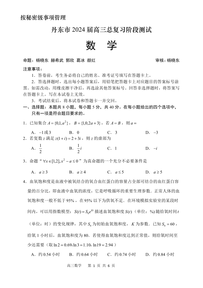 辽宁省丹东市2023-2024学年高三上学期11月阶段测试 数学
