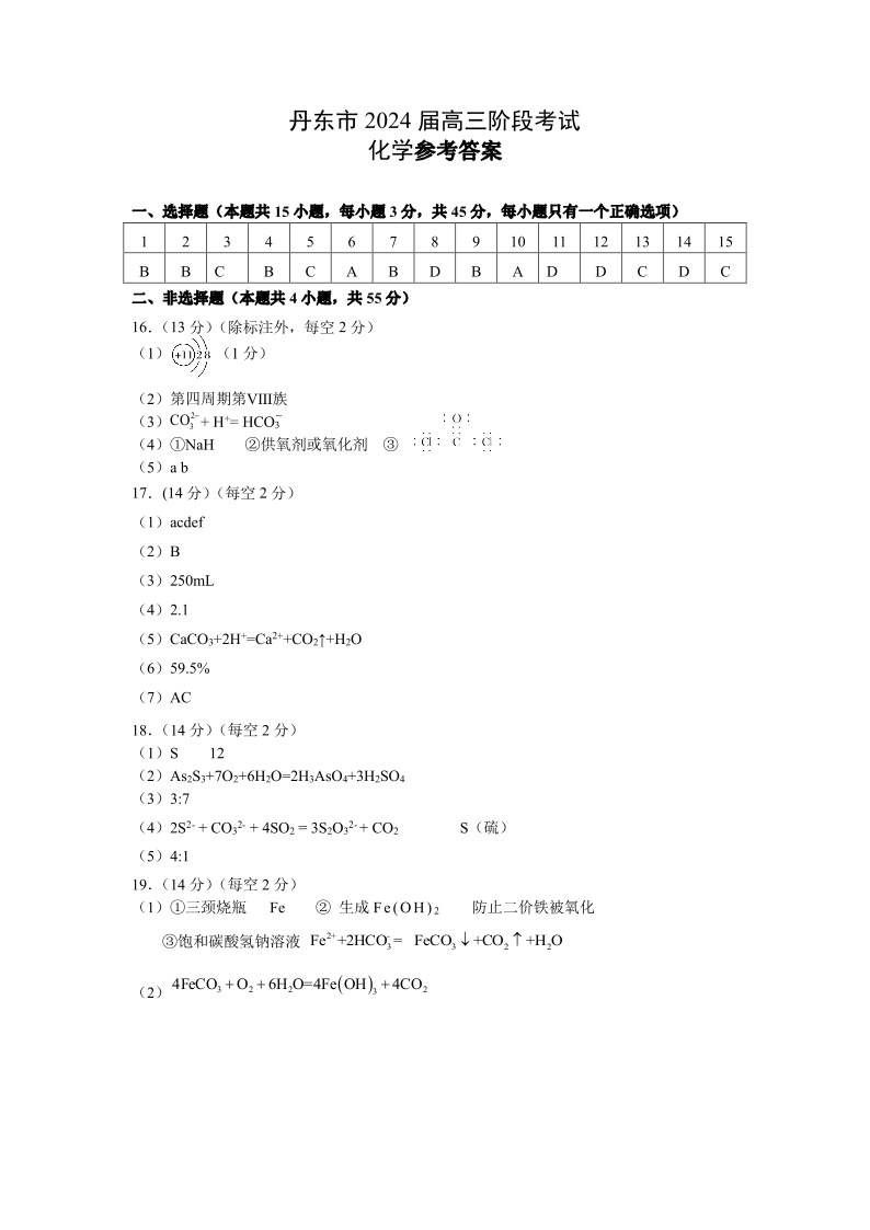 辽宁省丹东市2023-2024学年高三上学期11月阶段测试 化学答案