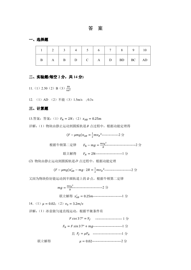 辽宁省丹东市2023-2024学年高三上学期11月阶段测试 物理答案