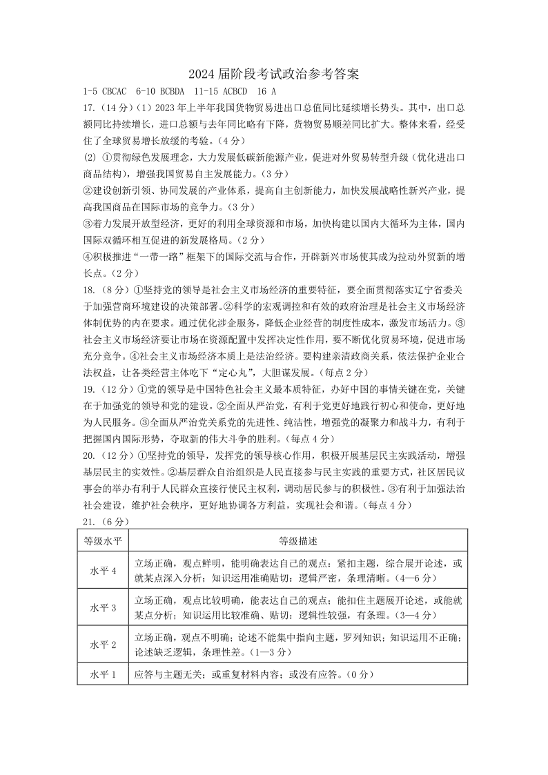 辽宁省丹东市2023-2024学年高三上学期11月阶段测试 政治答案