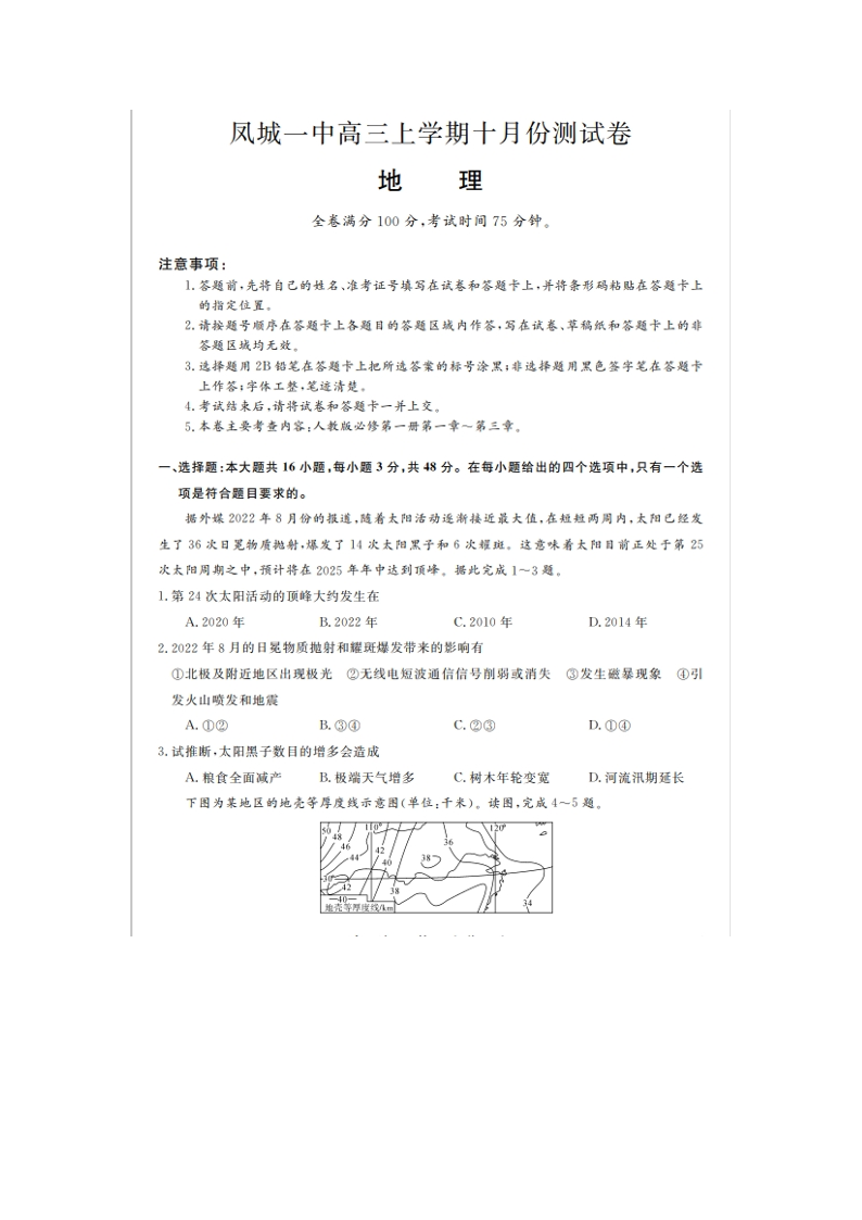 辽宁省凤城市第一中学高三上学期10月测试 地理