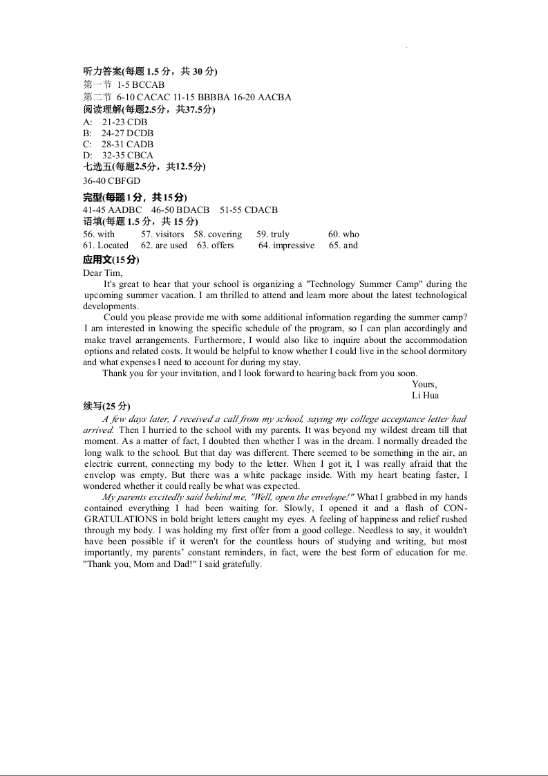 辽宁省沈阳市第二中学2023-2024学年高三上学期10月阶段测试 英语答案