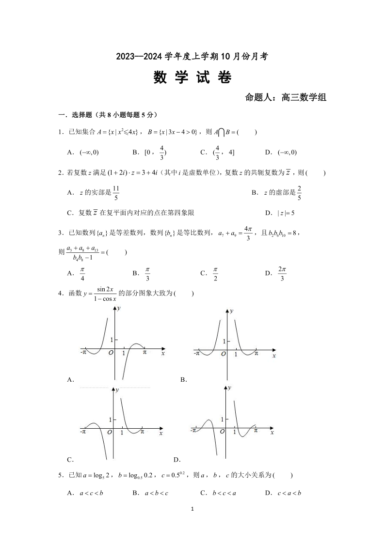 辽宁省新民市高级中学2023-2024学年高三10月月考 数学