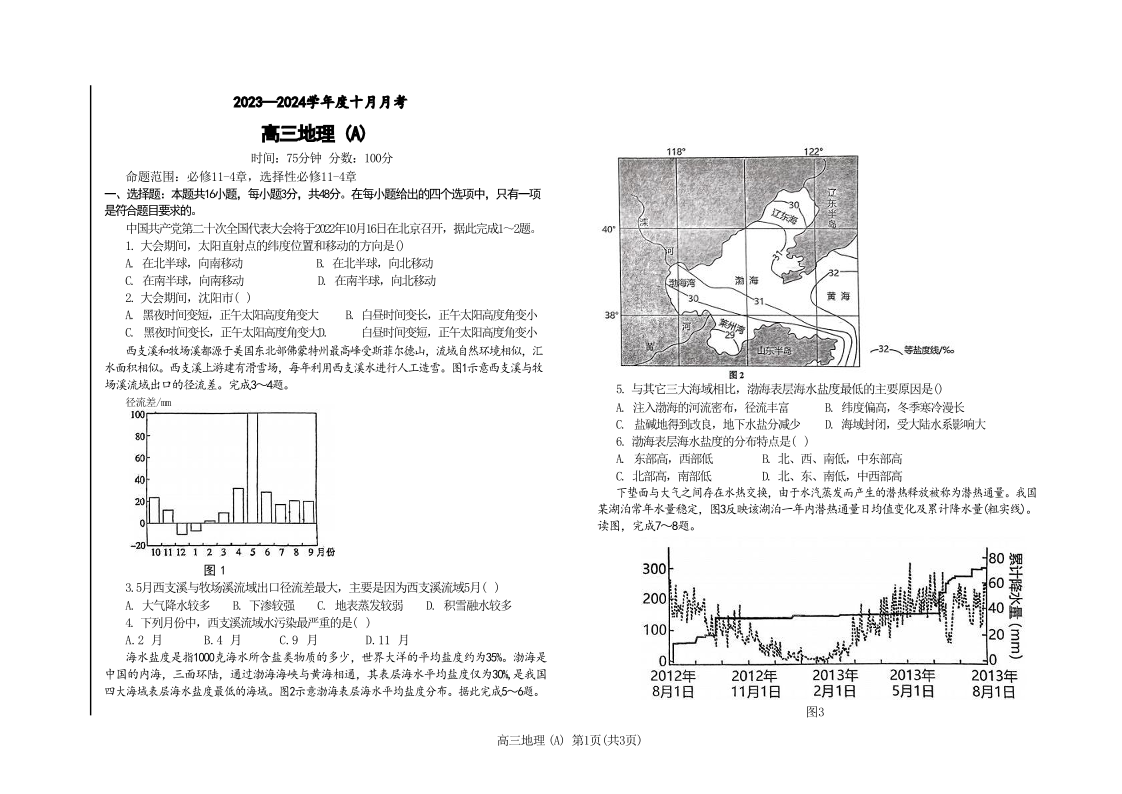 辽宁省鞍山市普通高中2023-2024学年高三上学期10月月考 地理