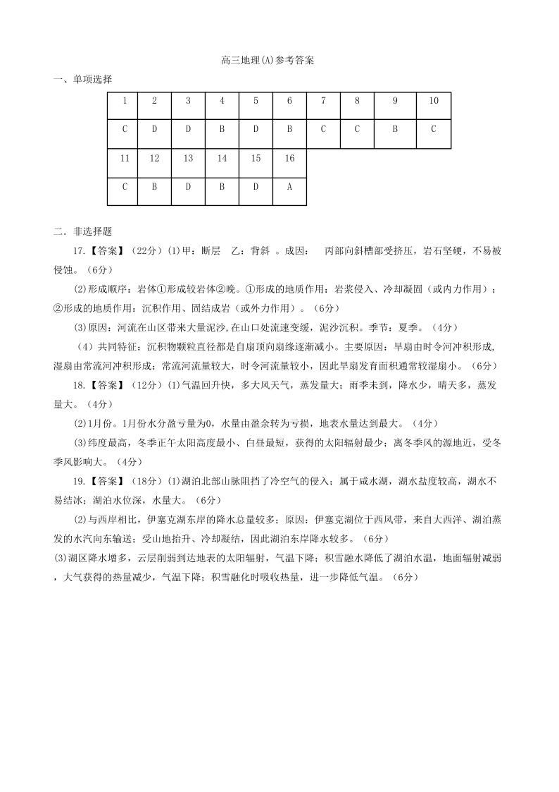 辽宁省鞍山市普通高中2023-2024学年高三上学期10月月考 地理答案