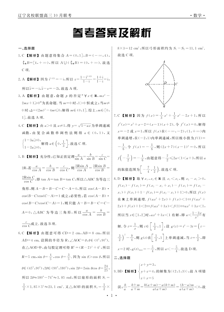 辽宁省名校联盟2023-2024学年高三上学期10月联考 数学答案