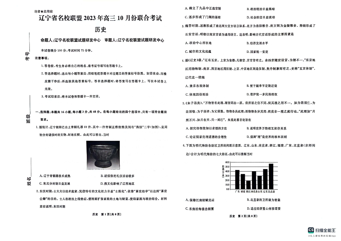 辽宁省名校联盟2023-2024学年高三上学期10月联考 历史
