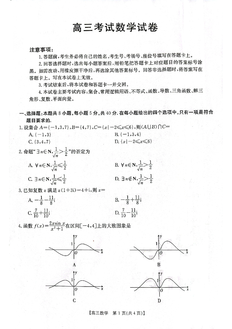辽宁省部分高中2023-2024学年高三上学期10月月考 数学