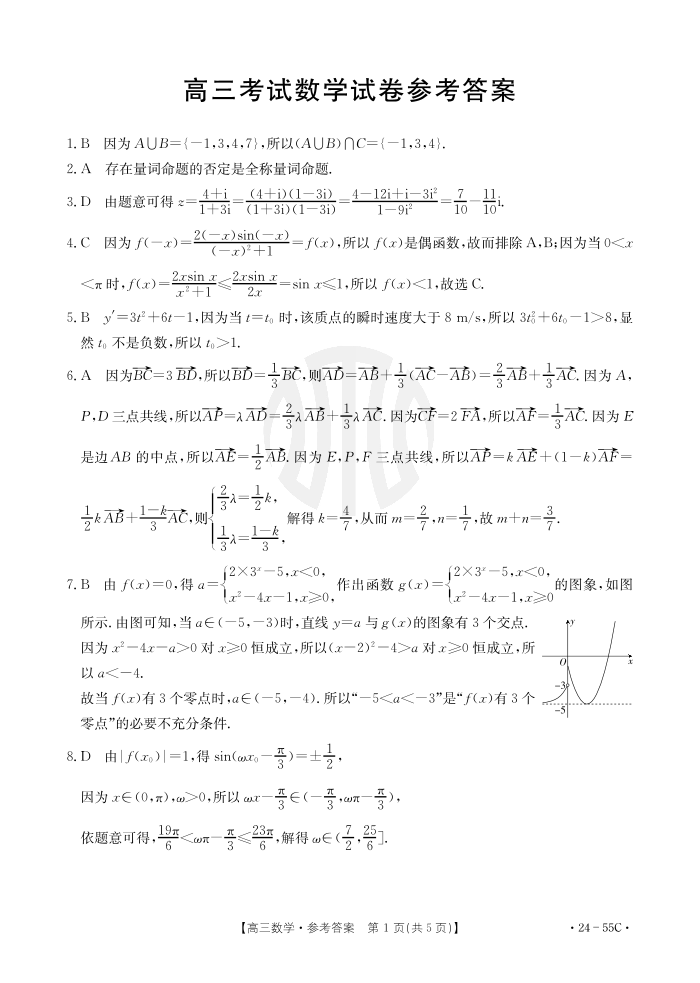 辽宁省部分高中2023-2024学年高三上学期10月月考 数学答案
