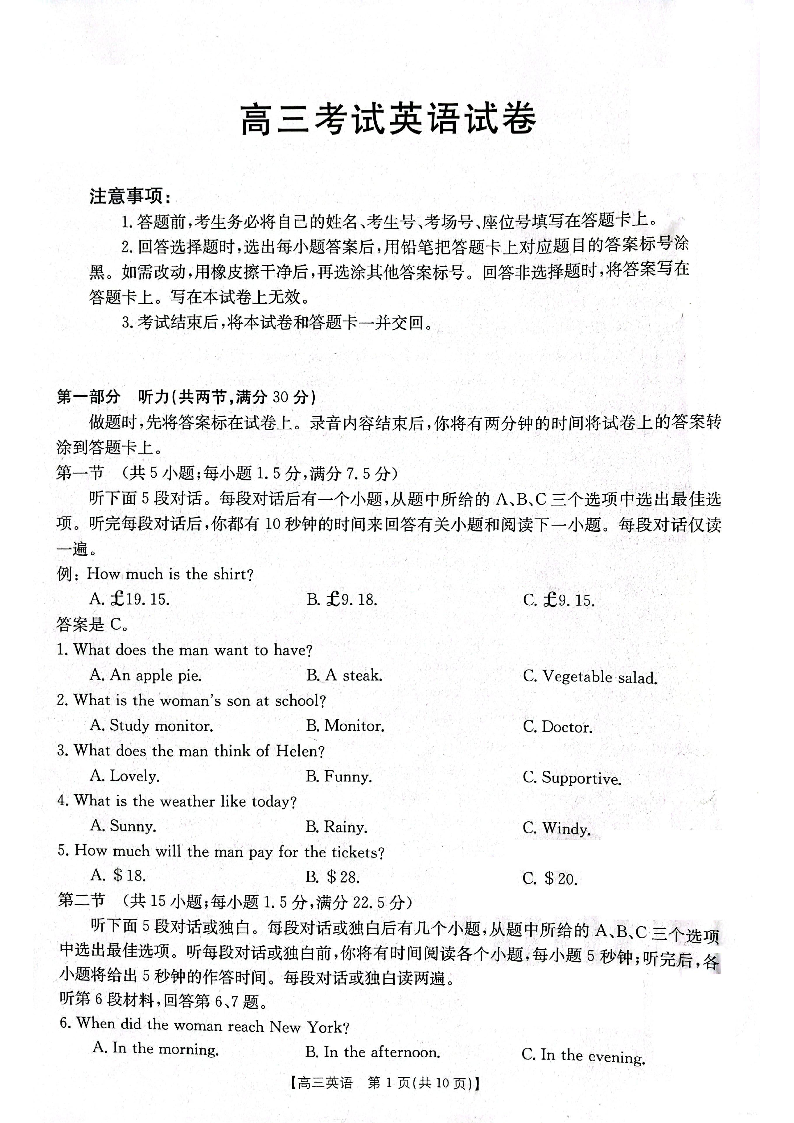 辽宁省部分高中2023-2024学年高三上学期10月月考 英语