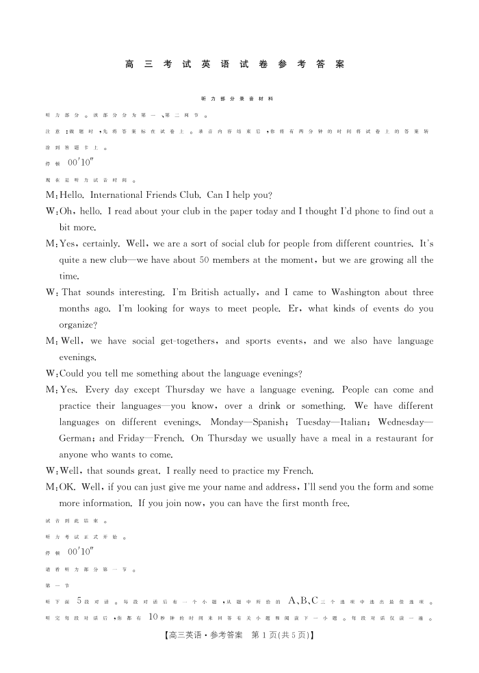 辽宁省部分高中2023-2024学年高三上学期10月月考 英语答案