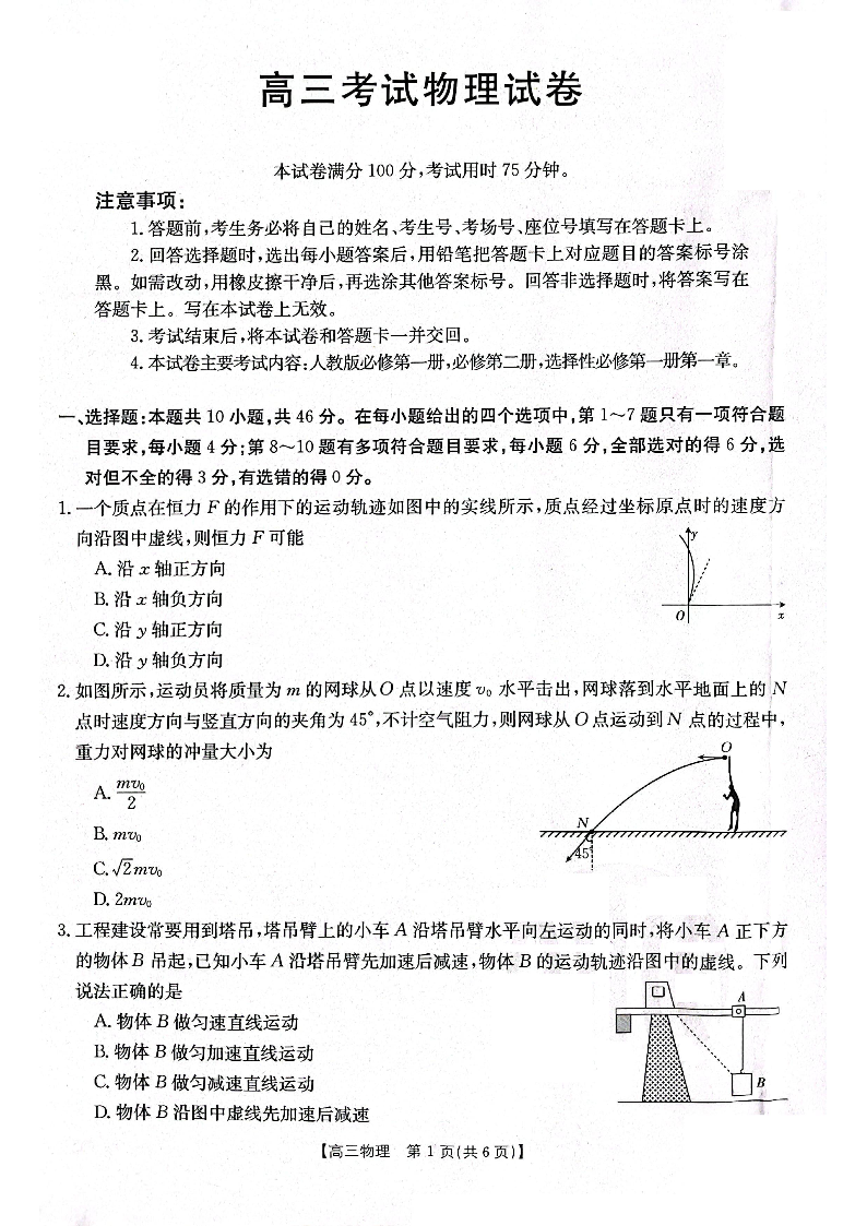 辽宁省部分高中2023-2024学年高三上学期10月月考 物理