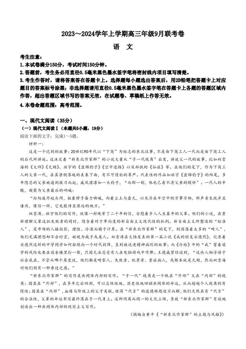 辽宁省名校协作体2023-2024学年高三上学期9月联考 语文