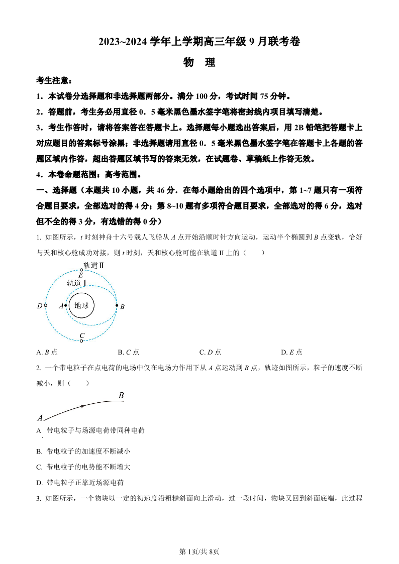 辽宁省名校协作体2023-2024学年高三上学期9月联考 物理