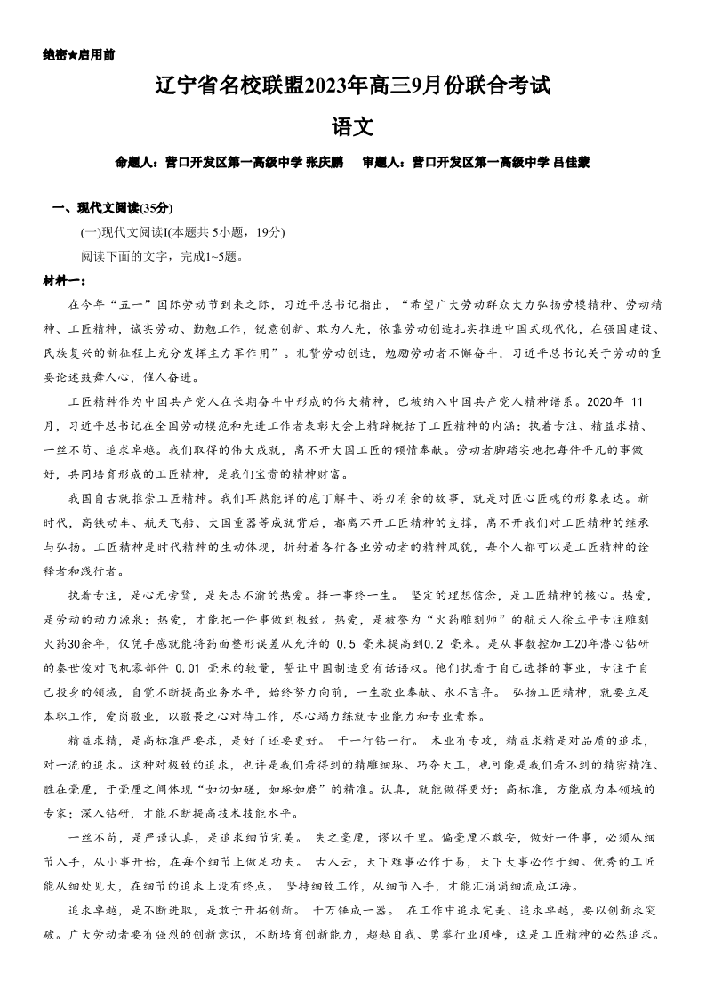 辽宁省名校联盟2023-2024学年高三上学期9月联考 语文
