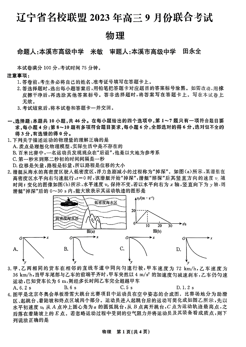 辽宁省名校联盟2023-2024学年高三上学期9月联考 物理