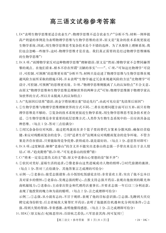 辽宁省部分学校2023-2024学年高三开学摸底考试 语文答案