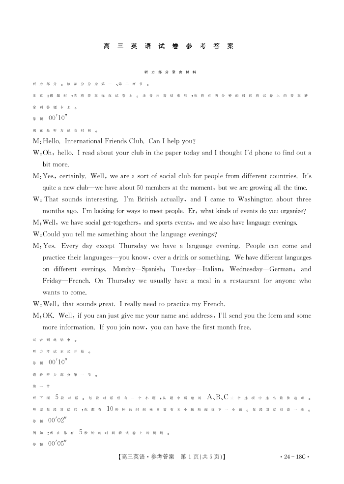 辽宁省部分学校2023-2024学年高三开学摸底考试 英语答案