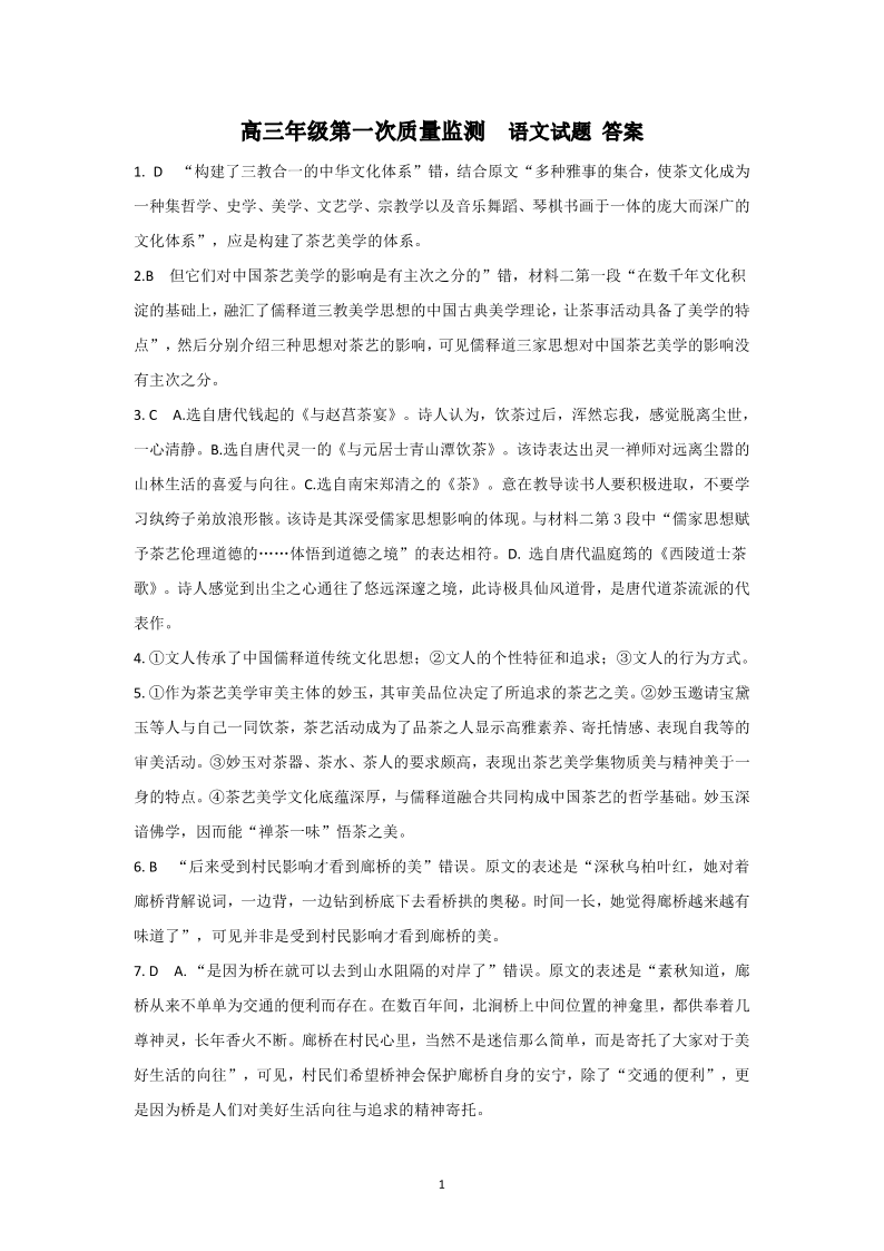 辽宁省沈阳市第一二〇中学2023-2024学年高三上学期第一次质量检测 语文答案
