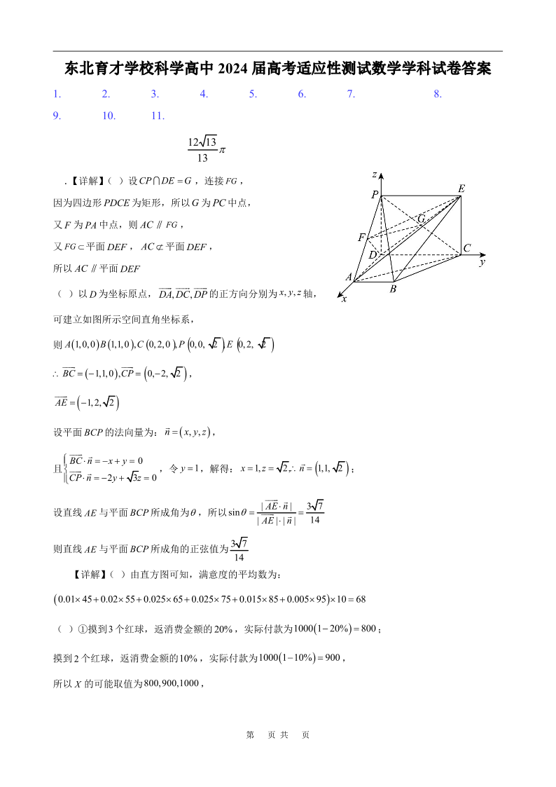 2024届辽宁省东北育才学校科学高中部高三下学期适应性测试+数学答案