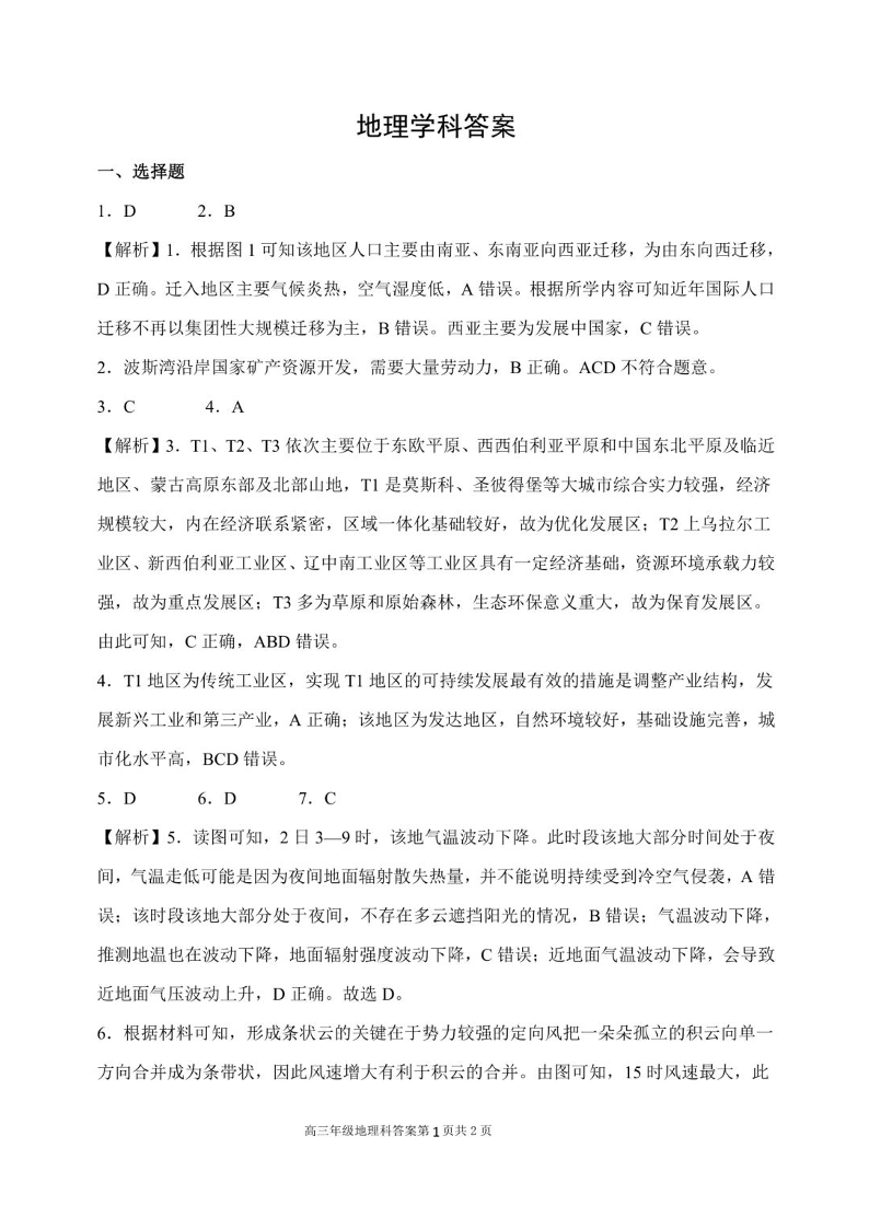2024届辽宁省东北育才学校科学高中部高三下学期适应性测试+地理答案