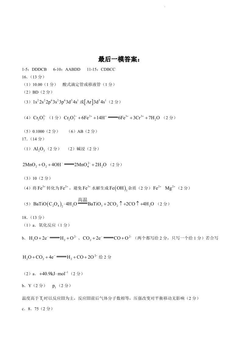 2024届辽宁省东北育才学校科学高中部高三下学期适应性测试+化学答案