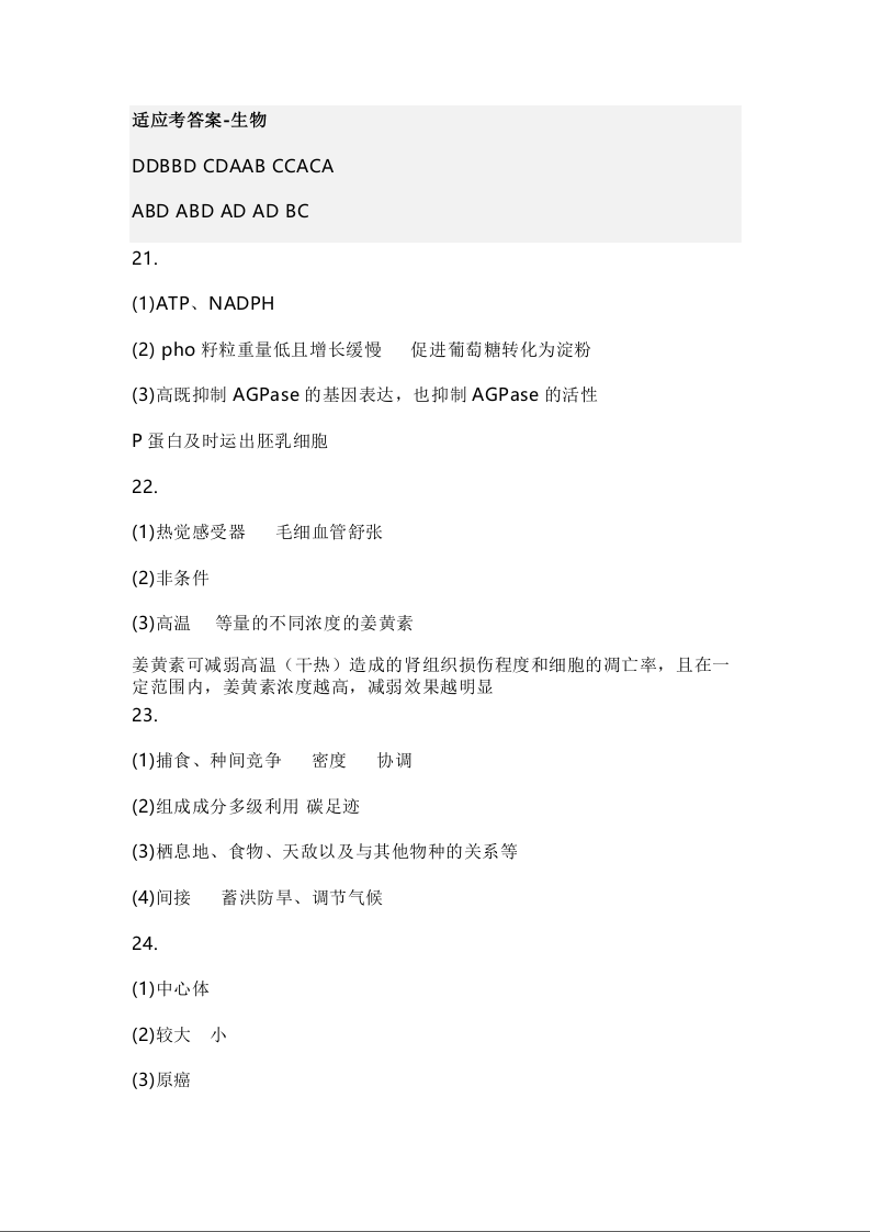 2024届辽宁省东北育才学校科学高中部高三下学期适应性测试+生物答案