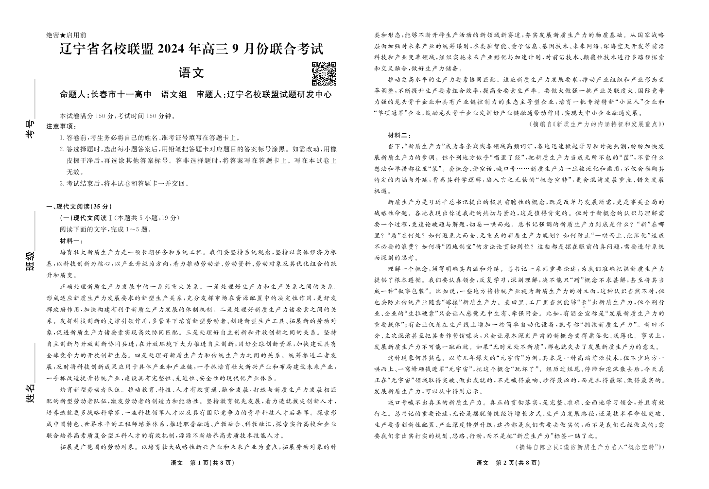 辽宁省名校联盟2024年高三9月份联合考试+语文